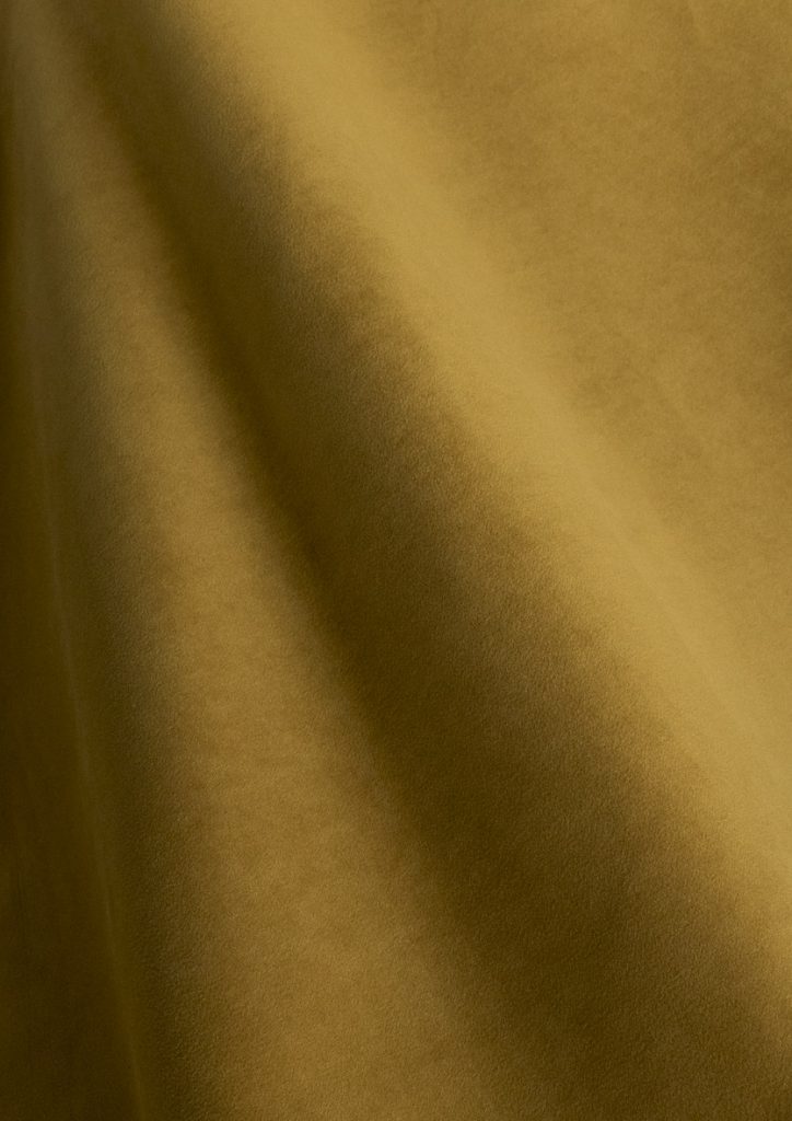This piece dyed knitted velvet has a short pile, this gives the textile a soft handfeel and creates a matt and elegant look.